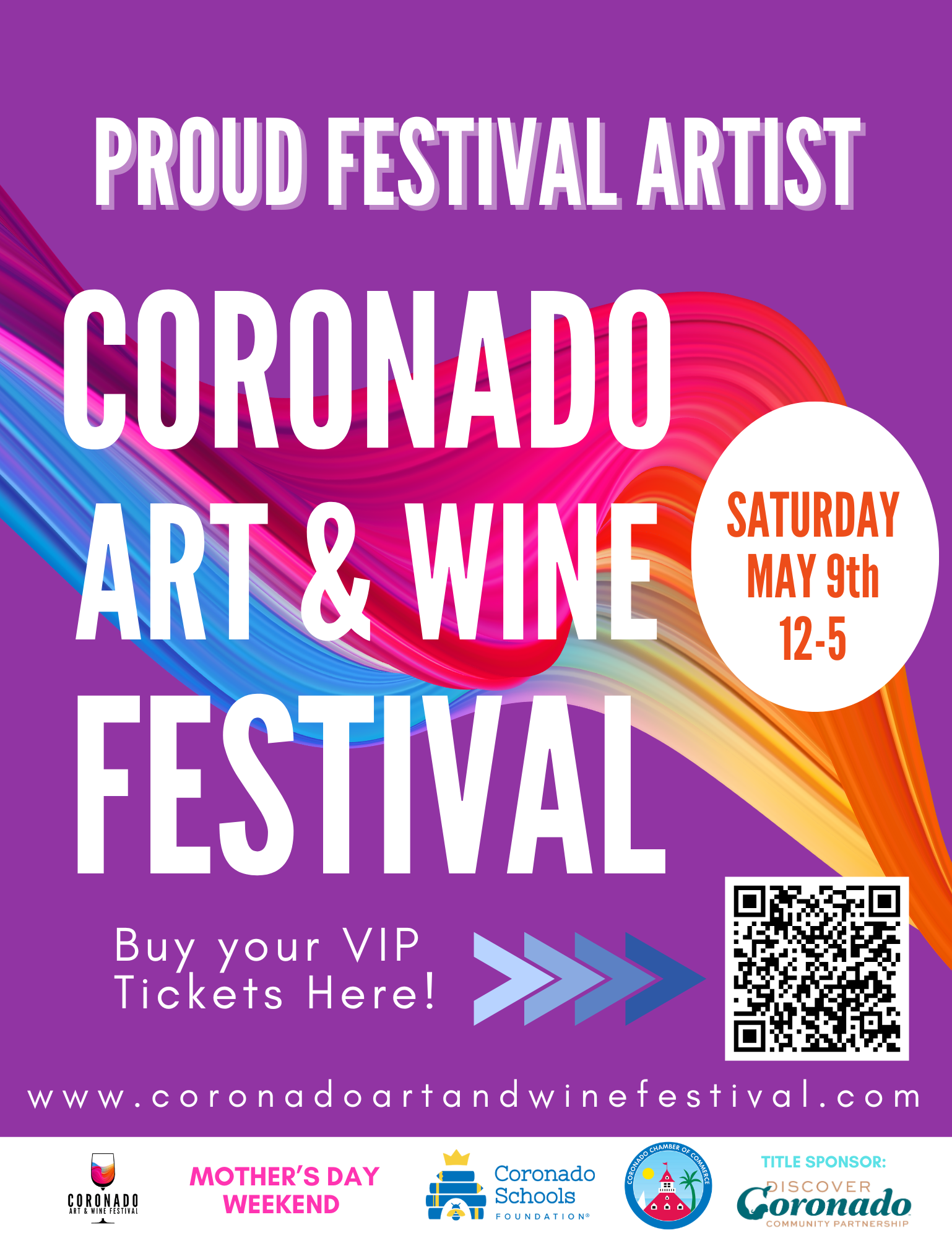 Cathy Surgeoner Deibler is a celebrated Coronado artist using multiple mediums and exhibiting her vibrant watercolor art on Orange Avenue Art Banner series, The Coronado Flower Show, The Coronado Art and Wine Festival, C Gallery Coronado and United States District Court, Downtown San Diego.You can find her racing in the bay in the many sailing regattas, longboard surfing with her husband, paddle boarding and ocean swimming.